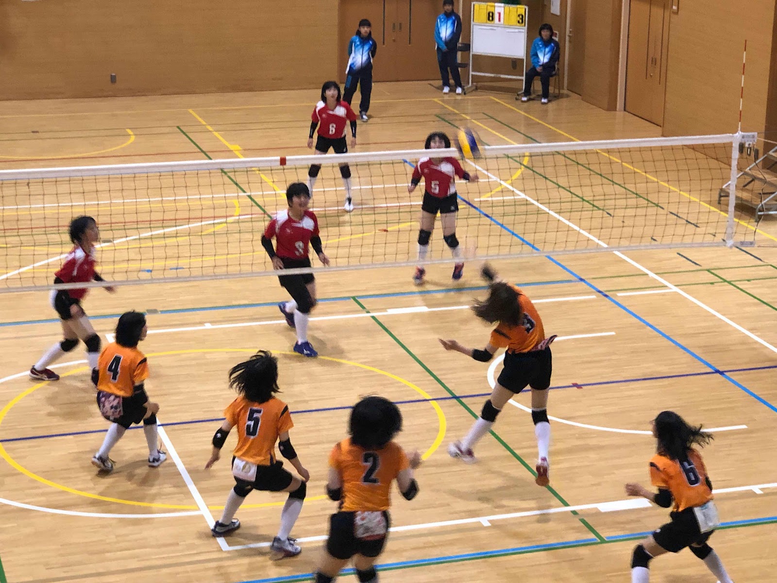 忠類戦は、第2セットも25ー11で勝ちました。サーブ、ブロック、スパイクと正確に決めていました。よく相手のボールを取っていました。明日も頑張ってください。